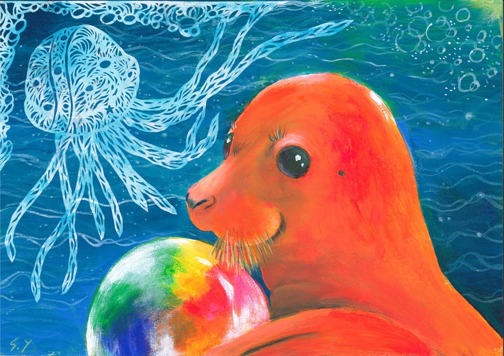 アザラシさんの模様や、水面の表現なども個性的で素敵です☆